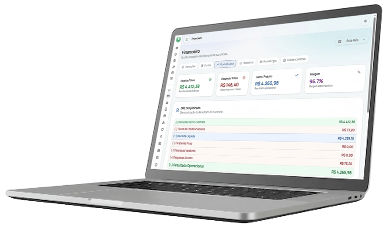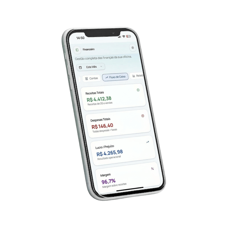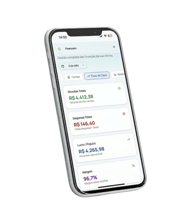 Acompanhe o desempenho financeiro de sua oficina em tempo real, de maneira simples e descomplicada.