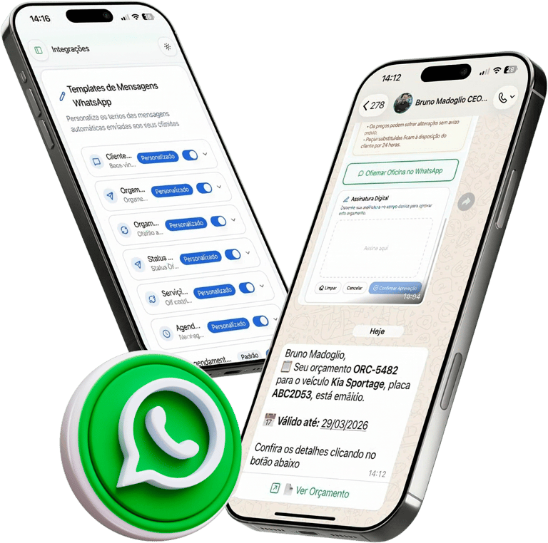 Seus clientes recebem automaticamente um WhatsApp com o botão de acesso direto ao orçamento gerado pela Oficina.